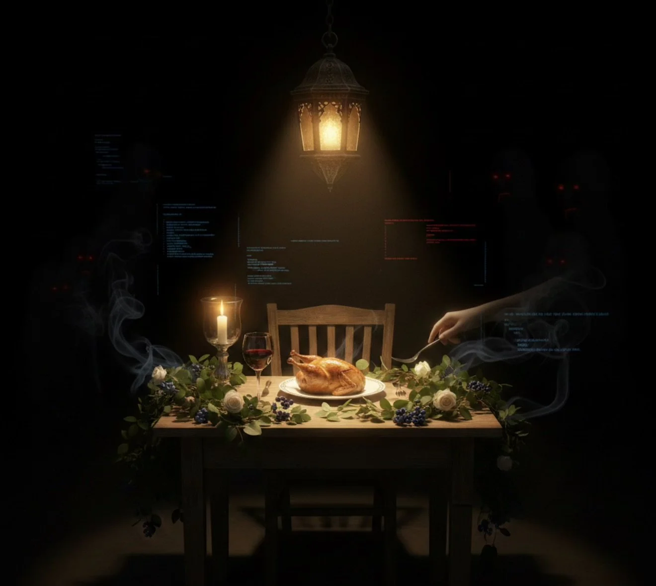a table in the dark